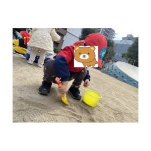 お砂で遊ぶのも大好き!スコップ上手に使ってますね。